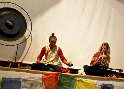 - moment magique avec Sylvie à la flute amérindienne et Pasang aux bols.