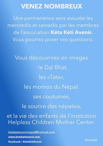 Réservation : 06 84 30 96 43 ou ketaketiavenirnepal@hotmail.com