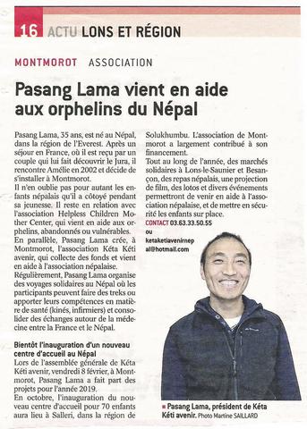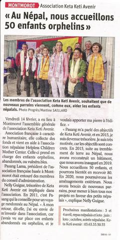 14/02/2020 - Kéta Kéti Avenir à l'honneur dans Le Progrès...